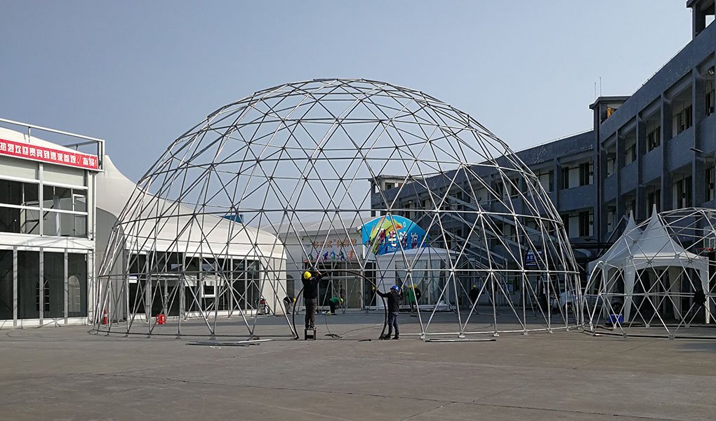 球形框架由镀锌管制成,盖子由PVC布制成。它是户外活动活动球形帐篷的主流材料,不同的生产商会有不同的工艺和规格。好来居的球形活动帐篷在选择镀锌管时将采用加厚型规格,其表面还将进行热浸镀锌或喷涂防腐处理,这可以确保球形帐篷具有8-10级的抗风能力和承重能力,并且不会被生锈损坏,使用寿命长达10多年!