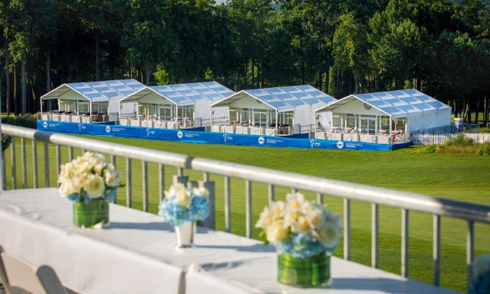 高尔夫运动场地一般是搭建一个欧式活动或是休息篷房,洁白的篷房和满地的草绿搭配很是别有一番风味,篷房搭建简单且周期较短,可快速投入使用,不管是临时休憩还是户外活动都能在如此盛景下进行。